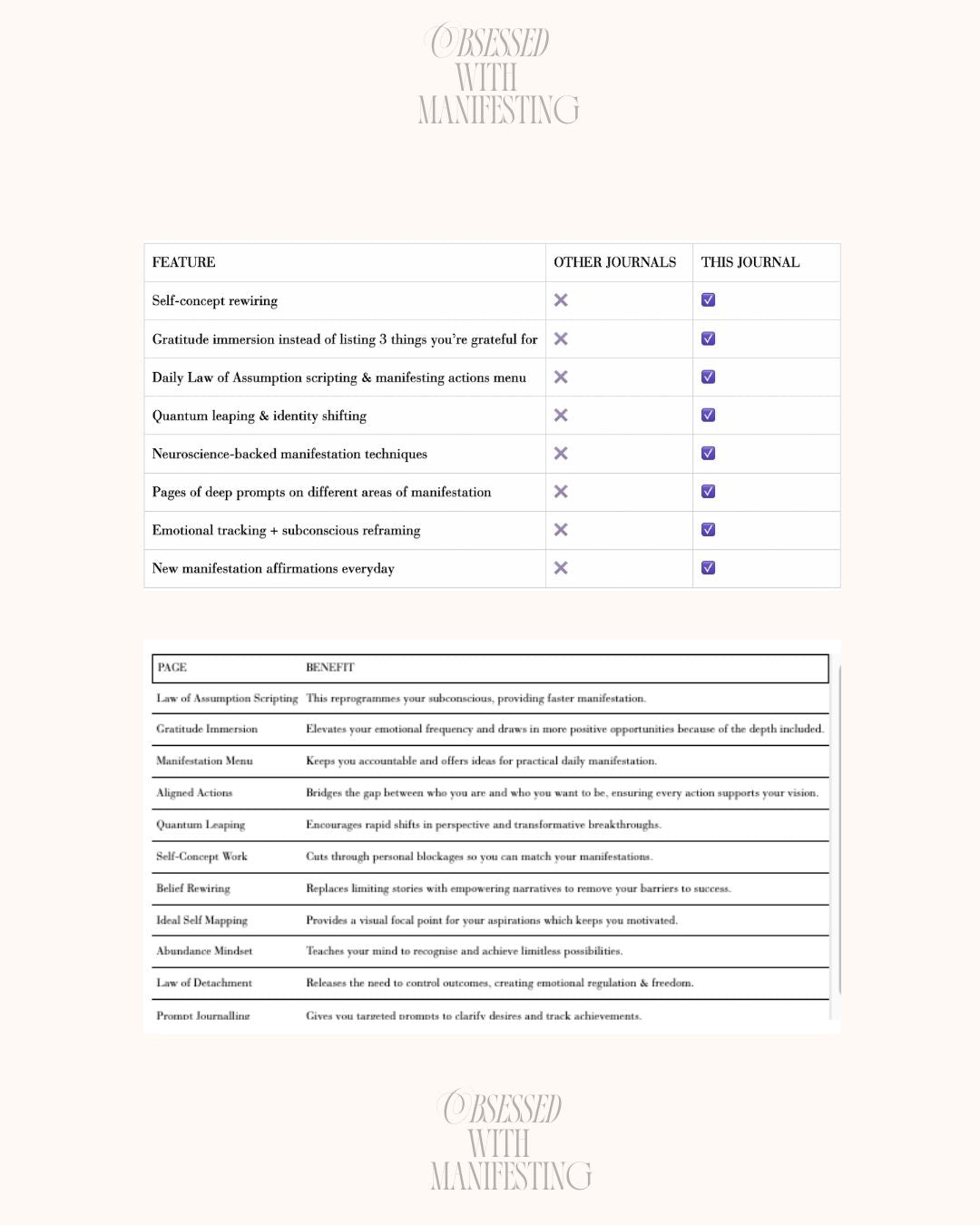 | Pages of deep prompts on different areas of manifestation | ❌ | ✅ |