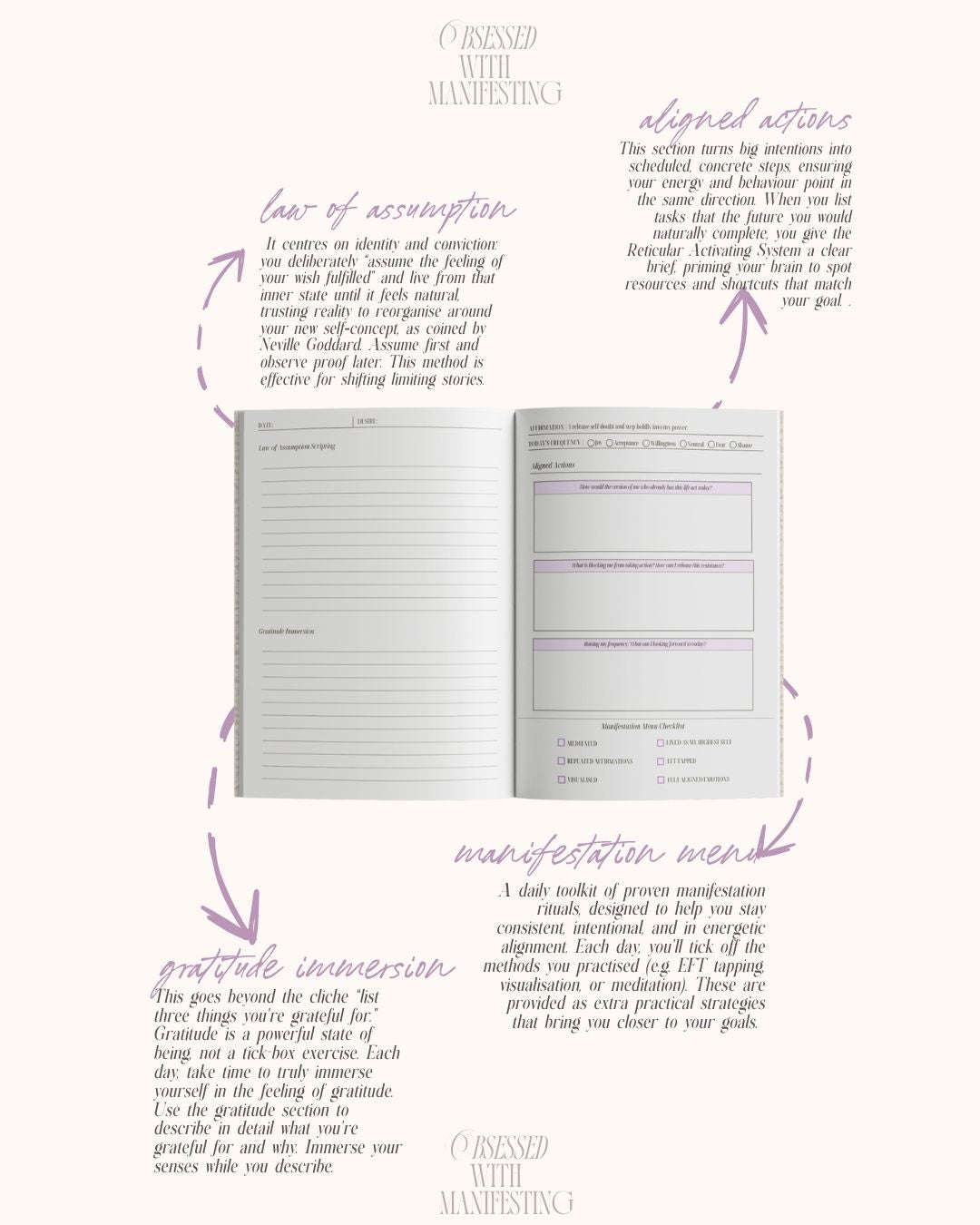 Break free from surface-level manifestation methods with the Obsessed With Manifesting Journal. A results-driven tool for people ready to embody and attract their desires immediately.
